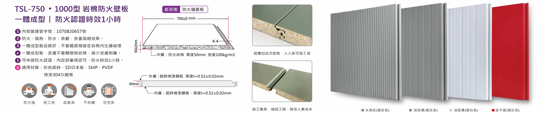 750型 屋頂防火(岩棉) 三明治